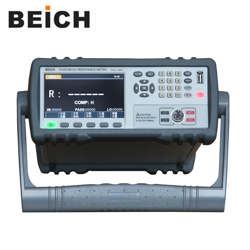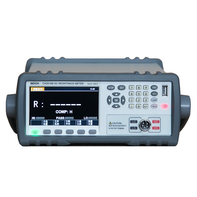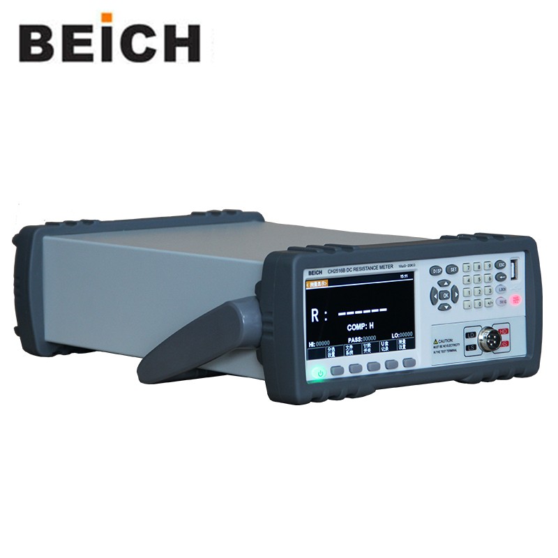 CH2516/A/B系列直流電阻測試儀具有高精度寬量程高性價比的特點,采用當前主流的32bits CPU和高密度SMD貼裝工藝、24位色4.3英寸IPS彩色液晶屏,界面直觀清爽、操作便捷。儀器具有較高的抗干擾性;量程范圍為: 1uΩ-2MΩ;顯示位數為四位半;測試速度可達20次/秒;測試精度可達 0.05%;溫度補償能免除環境溫度對測試工作的影響;本儀器配備有專業分選功能與數據輸出功能等,具有多樣分選訊響設置,還可匹配Handler接口,應用于自動分選系統完成全自動流水線測試,使測試效率倍增。并配備RS232接口,用于遠程控制和數據采集與分析。本儀器小巧、緊湊但功能齊全。通過四端子測試法,可高速、高精度的測量各種高、中、低值電阻器;各種開關接觸電阻;接插件接觸電阻;繼電器線包和觸點電阻;變壓器、電感器、電機、偏轉線圈繞線電阻;導線電阻;車、船、飛機的金屬鉚接電阻;保險絲、電阻器、導電橡膠的直流電阻、印制板線條和孔化電阻等直流低電阻。由于儀器配備有溫度補償功能,因此適合于測量電阻值因溫度而發生變化的被測對象。儀器廣泛用于研究開發、生產線、進料檢測等各種場所。